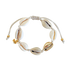 Breng de zomer om je pols met deze stijlvolle schelpenarmband. Gemaakt van natuurlijke kauri schelpen, subtiel geregen op koord met verstelbare schuifknoop. Eén schelp is goudkleurig voor een speelse twist, en als extra detail hangt er een klein goudkleurig zesterretje aan – voor een vleugje beachy sparkle.