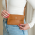 Lyfke ist eine ganz besondere Tasche! Eine kleine Tasche, in die Smartphone, Schlüssel, Portemonnaie und eventuell noch ein paar Kleinigkeiten wie zum Beispiel der Lipgloss genau hineinpassen. Sie können sie als Schultertasche oder Crossbody tragen. Sie kann aber auch an Ihrem Gürtel sein. Praktisch! Die Tasche besteht aus echtem Leder und ist mit einem robusten Canvasstoff gefüttert. Innen ist noch ein weiteres Fach vorhanden, welches mit Reißverschluss verschließbar ist. Der abnehmbare Schultergurt ist bis zu 120 cm verstellbar.