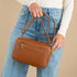 A nice leather bag to carry your most important things. The shoulder strap is adjustable up to 120 cm. The bag closes with a zipper (double). The bag has handy compartments on the inside. Because you can unzip the bag completely, you have a good overview of your things. Never lose your keys in your bag again ;-).