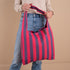 Deze mooie knitted gestreepte tas is een ideale tas om mee te nemen voor een boodschap. Maar ook leuk om bijvoorbeeld naar je werk te nemen. Deze mooie knitted tas is gemaakt van 100% polyester. De tas heeft een sluiting met een magnetische knoop. Omdat de stof elastisch is past er super veel in!
